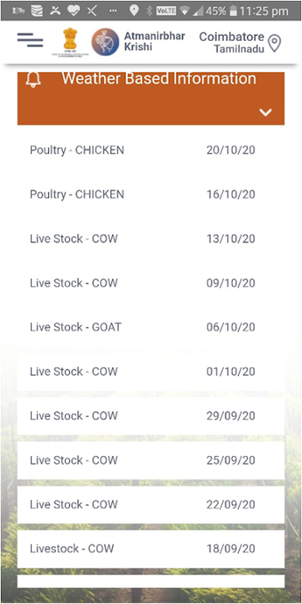 แอปพลิเคชัน Atmanirbhar Krishi ให้แพลตฟอร์มสำหรับเกษตรกรเพื่อเข้าถึงข้อมูลที่เก็บรวบรวมมาจากหลายกรมและหน่วยงานของรัฐบาล เช่น กรมการเกษตร กรมอุตุนิยมวิทยาอินเดีย (IMD) องค์การวิจัยอวกาศอินเดีย (ISRO) กรมประปาและคุณภาพน้ำ คณะกรรมการวิจัยเกษตรแห่งชาติ (ICAR) ศูนย์สารสนเทศน้ำแห่งชาติ (NWIC) คณะกรรมการน้ำใต้ดินกลาง (CGWB) และอื่น ๆ แอปพลิเคชันยังรวมตัวด้วยตัวติดตามโครงการซึ่งคุณสามารถติดตามโครงการทั้งหมดที่คุณมีส่วนร่วมได้